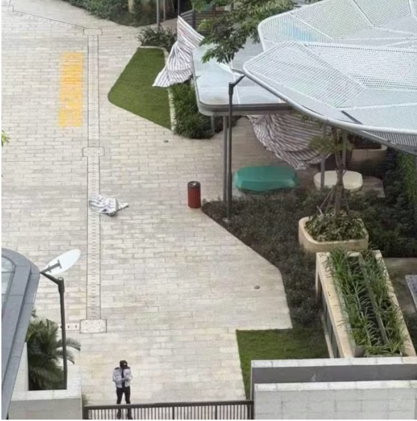 Bảo vệ khu chung cư phong tỏa hiện trường và báo công an địa phường. Nguồn ảnh: MXH